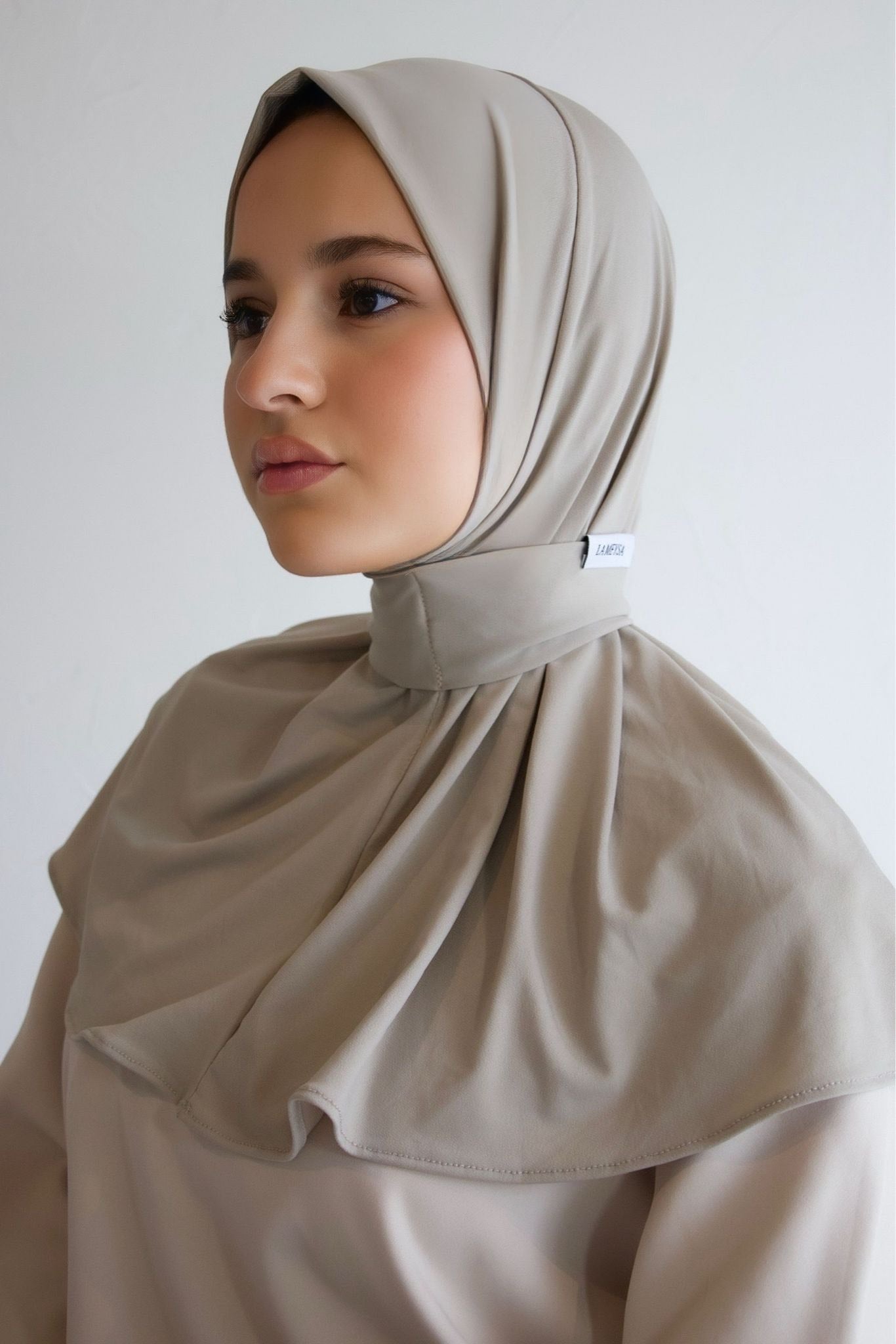 Ontdek het comfort van onze instant hoofddoeken. Gemaakt van zachte, ademende jersey stof die soepel valt en licht stretcht voor een perfecte pasvorm. De stof heeft een subtiele glans die je look een elegante touch geeft. Dankzij de handige knoopjes blijft de hoofddoek perfect zitten.