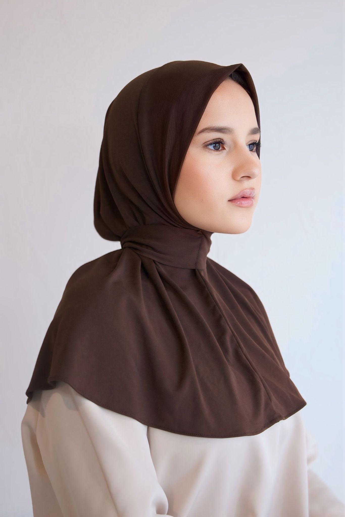 Ontdek het comfort van onze instant hoofddoeken. Gemaakt van zachte, ademende jersey stof die soepel valt en licht stretcht voor een perfecte pasvorm. De stof heeft een subtiele glans die je look een elegante touch geeft. Dankzij de handige knoopjes blijft de hoofddoek perfect zitten.